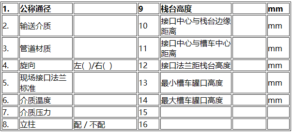 技术参数: 鹤管选型参数表