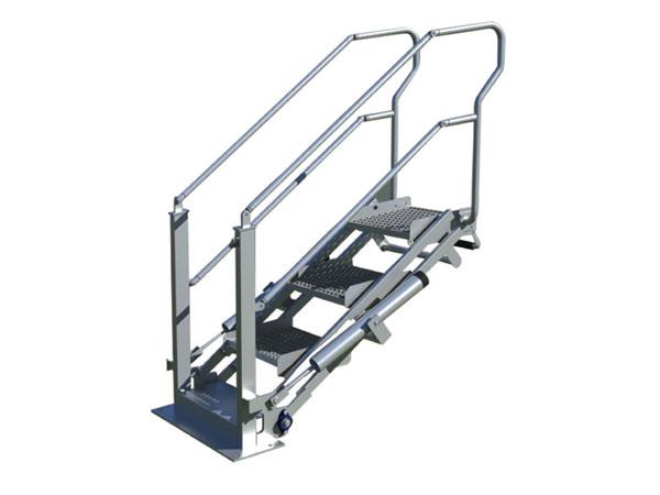 活动梯用于操作人员在固定平台与不同高度槽车顶部之间的安全通道,主要有踏步、扶手、弹簧缸平衡系统等组成。