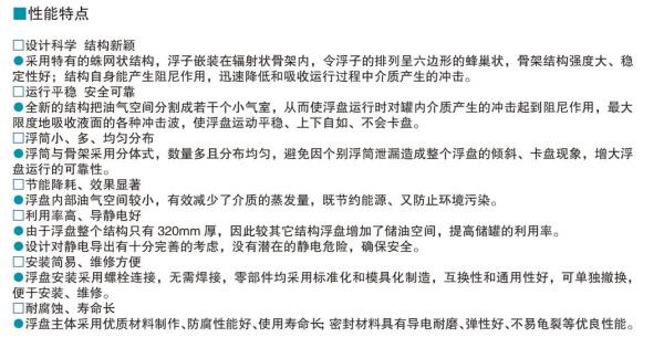 根据介质化学特性,浮盘材质可以选用铝制、钢制、不锈钢制。